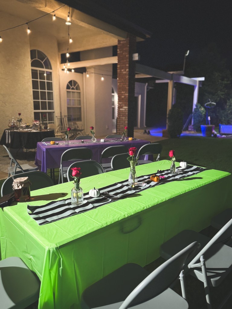 - “Beetlejuice” black and white striped runner: these were my FAVORITE, but unfortunately were misplaced after loaning them out! We ordered these in a pinch and they looked great!