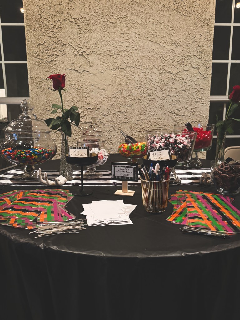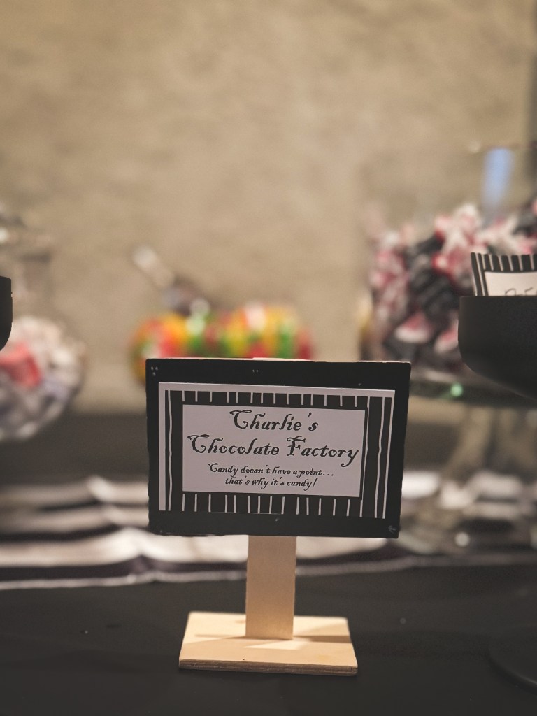 - Charlie’s Chocolate Factory: old fashioned candy jars + scoops. You can do any kind of candy really (Winco is great for bulk candy!), but it would also be SO fun to do all Wonka candy! (Nerds or Nerd Clusters, Fun Dip, Sweet Tarts, Spree, Gobstoppers, Bottlecaps, Runts, Laffy Taffy, etc.). Don’t forget goodie bags for your guests to bring home their treats!