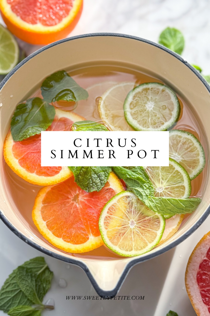Embrace the hygge lifestyle and cozy up your home with a simmer pot! Fresh and bright citrus and aromatic mint are simmered together to brew a bright yet calming smell that creates a cozy, comforting moment in your home.