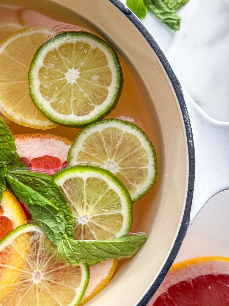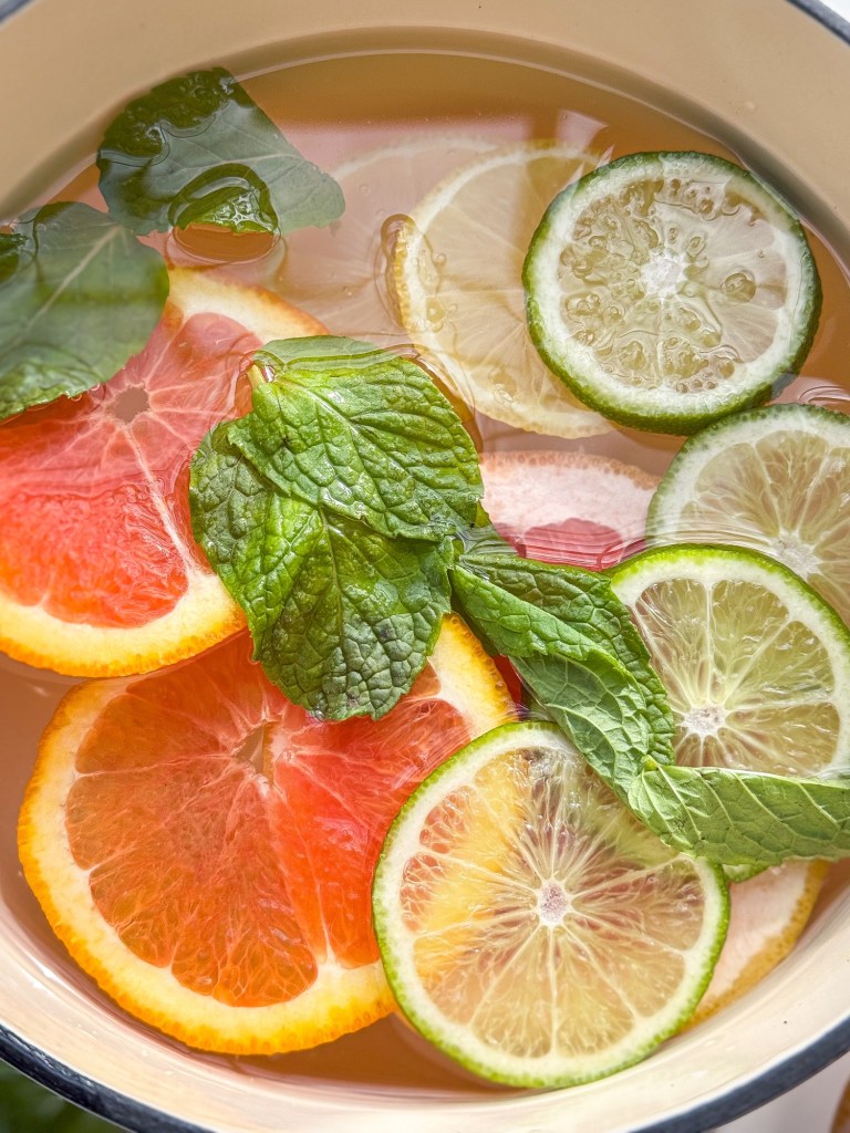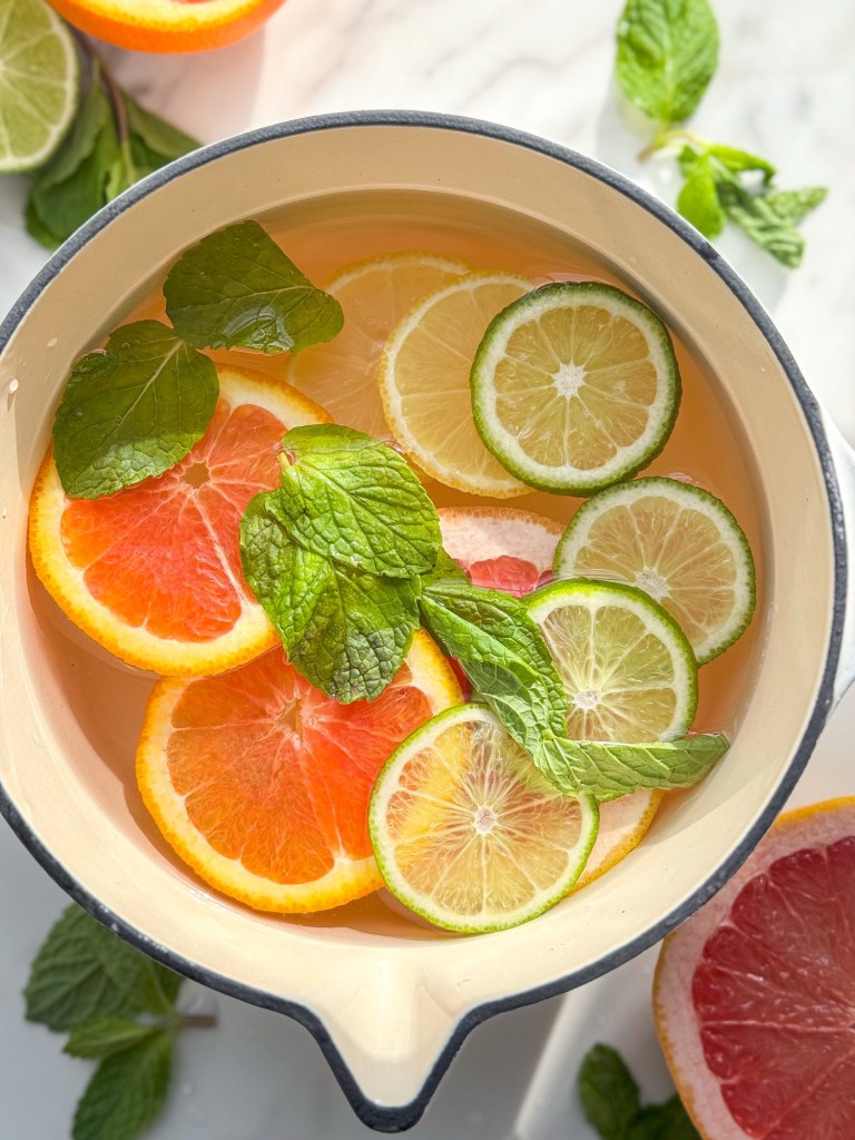 Alternatively, you can fill a crockpot 3/4 full of water. Add the sliced citrus and mint. Set on high for 3-4 hours uncovered, so potpourri can become heated and the aromas develop.