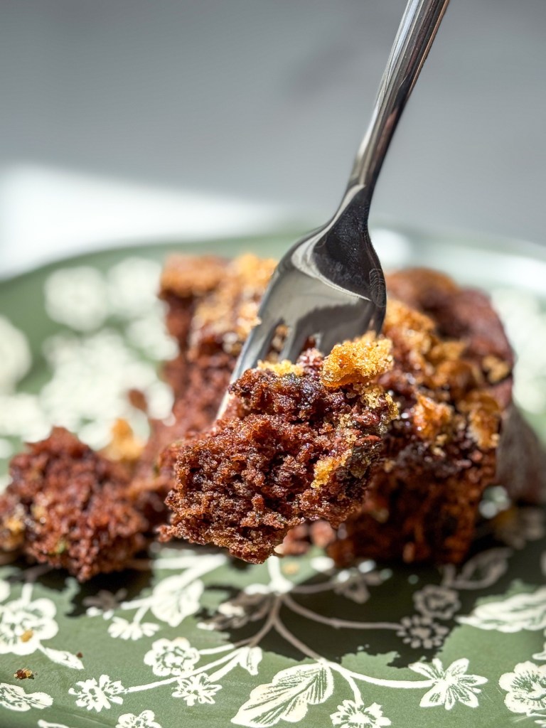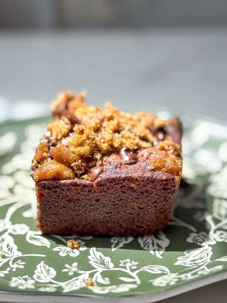 This recipe creates a cake that is so moist and flavorful, it’ll become a new family favorite. The key to its incredible texture is the zucchini, which keeps the cake from drying out, while the cocoa powder and chocolate chips deliver a deep, rich chocolate flavor (and bonus…you’re getting your greens in!). The brown sugar and chocolate chips baked on top create a crispy, crunchy crust that is pure perfection.