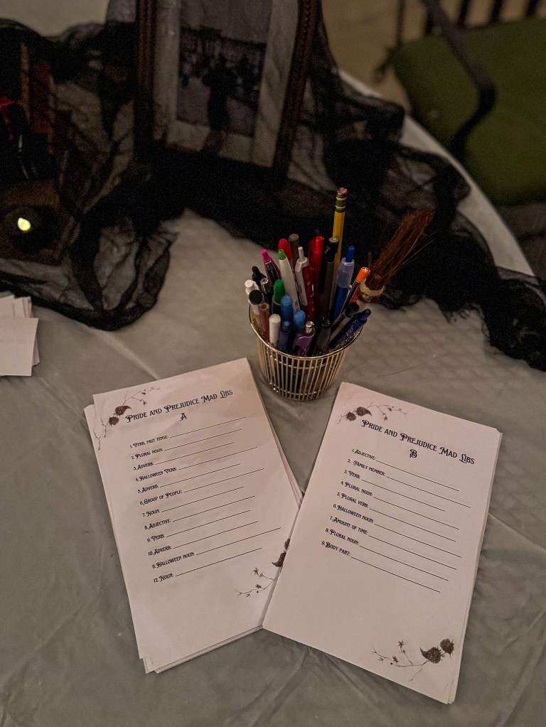 So please, allow me to walk you through what we did for this slightly spooky Jane Austen-inspired evening, complete with Halloween-meets-Pride and Prejudice-Mad Libs, morbidly-marvelous themed food, and more!